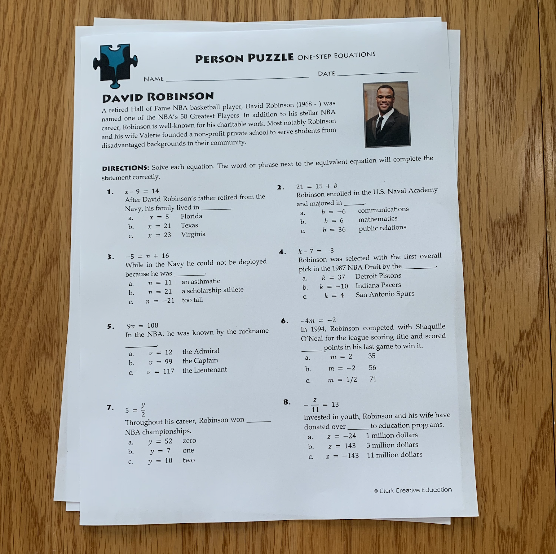 • Person Puzzles that reveal biographies as students solve problems