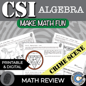 CSI Algebra activities turn algebra practice into a mystery investigation where students solve problems to analyze clues and uncover the case.