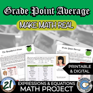 Grade Point Average is a real-world math project where students analyze grading systems, calculate GPA using weighted and unweighted scales, and explore how different academic decisions affect long-term results. Our grade point average math project helps students understand how GPA is calculated and why it matters. Instead of abstract averages, students explore how grades translate […]
