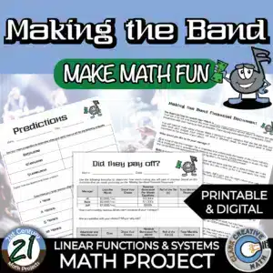 This making the band math project helps students use linear equations, systems, and break-even analysis to launch an album through a real-world algebra scenario.